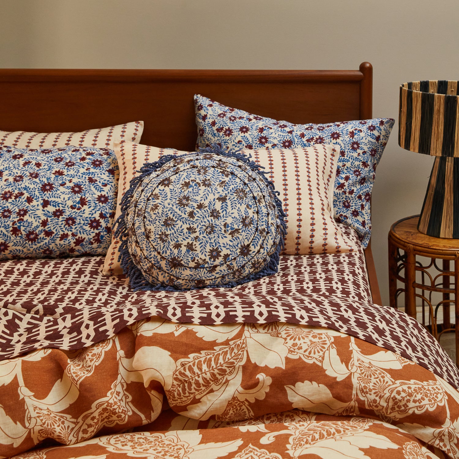 Inviting textures and lived-in luxury reign supreme in our statement cushions, screen printed by hand for an artisanal touch.