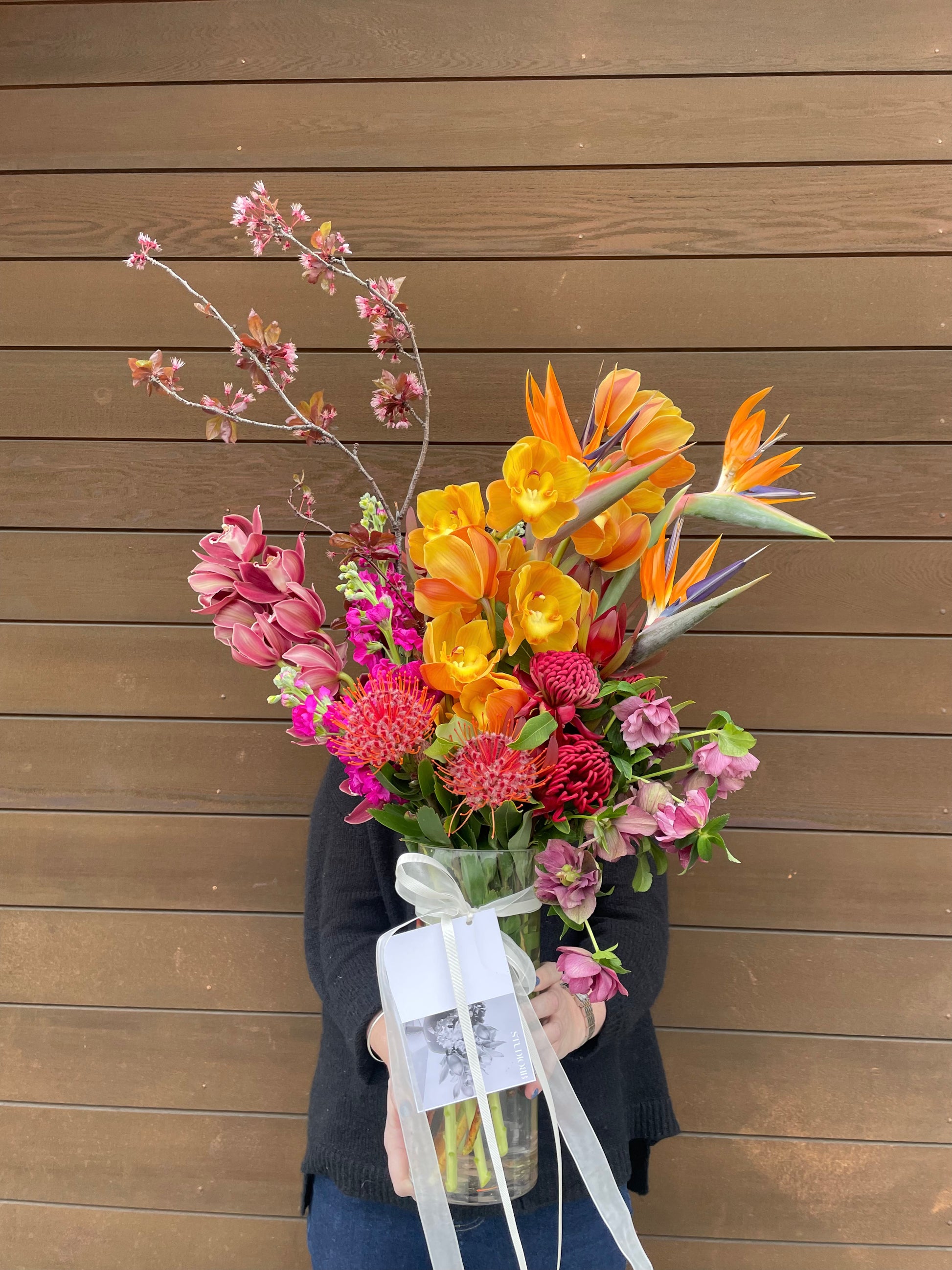 We offer florists choice meaning we're able to source the freshest premium blooms from all over New Zealand and delivered directly to you here in Queenstown. Every arrangement is unique, each design is created using our signature style for maximum impact.